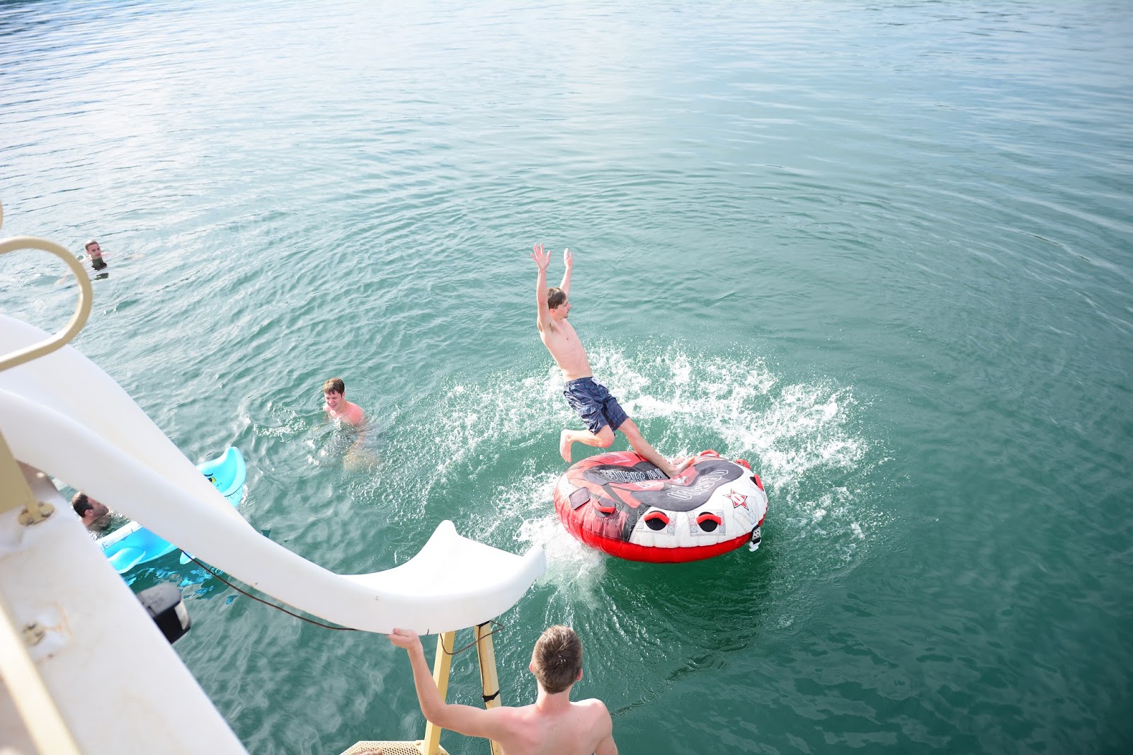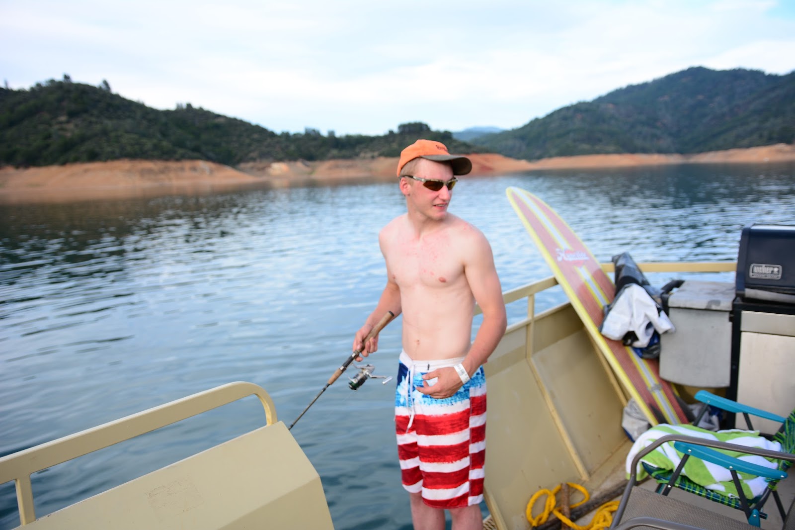 {Lunch} time on the party barge. This was one of the awesome parts of having this boat. It was a perfect home base. We had two other boats and we could come and go, switching out kids and those that wanted to just swim, eat, hang out, fish use the bathroom had a great place to do those things as well. It meant we could be out on the lake ALL DAY!